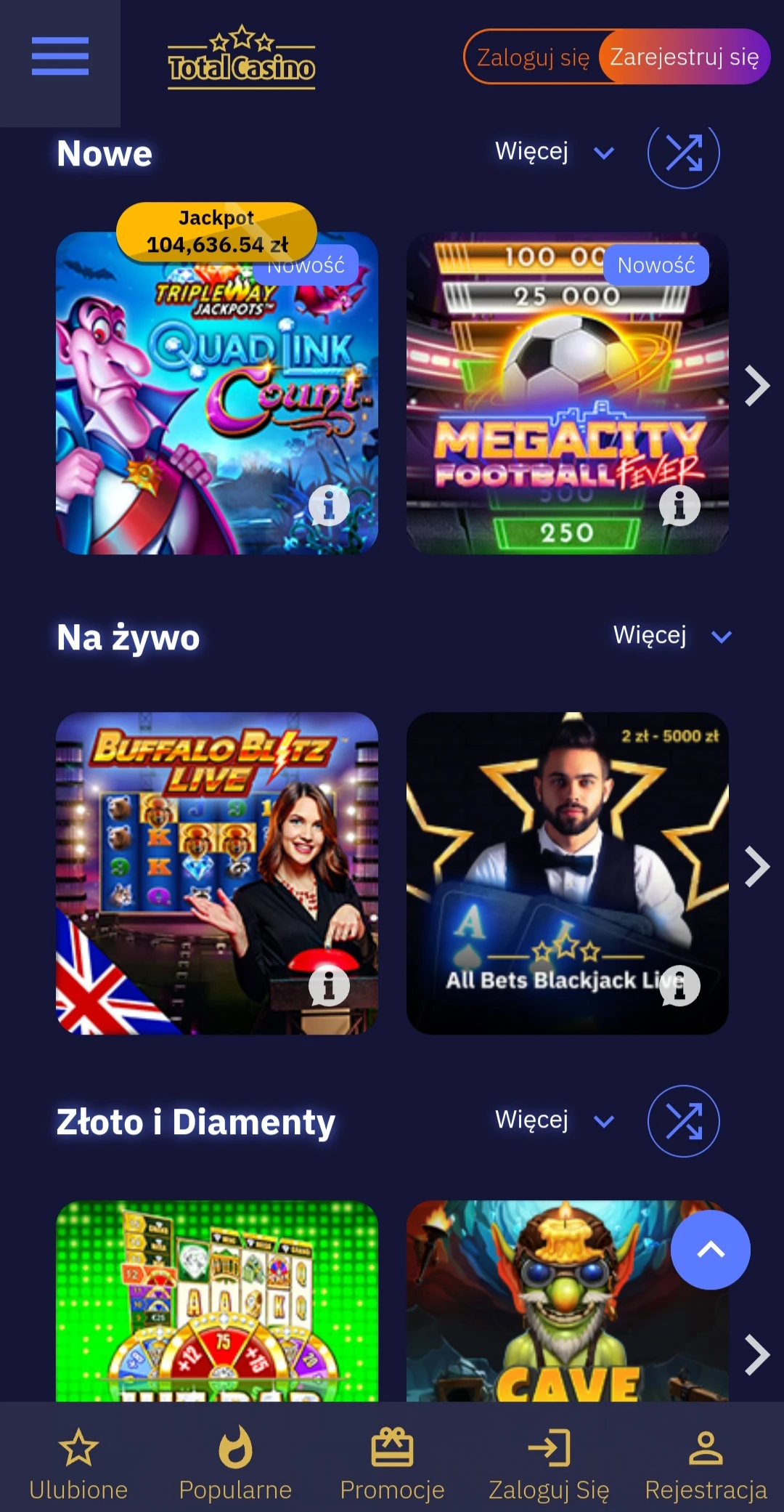 Total Casino to jedyne legalne kasyno w Polsce. Ma ciekawą ofertę i oferuje ponad 900 gier hazardowych. Poniżej omówimy wszystkie typy gier, które występują w Total Casino.
