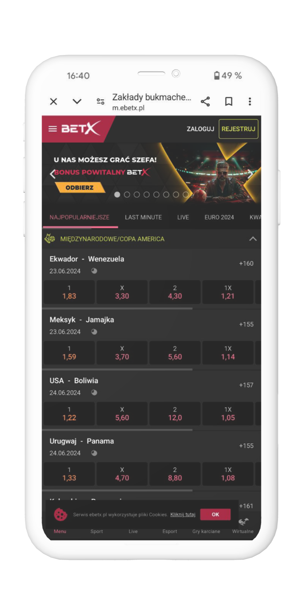 Kursy bukmacherskie w BetX