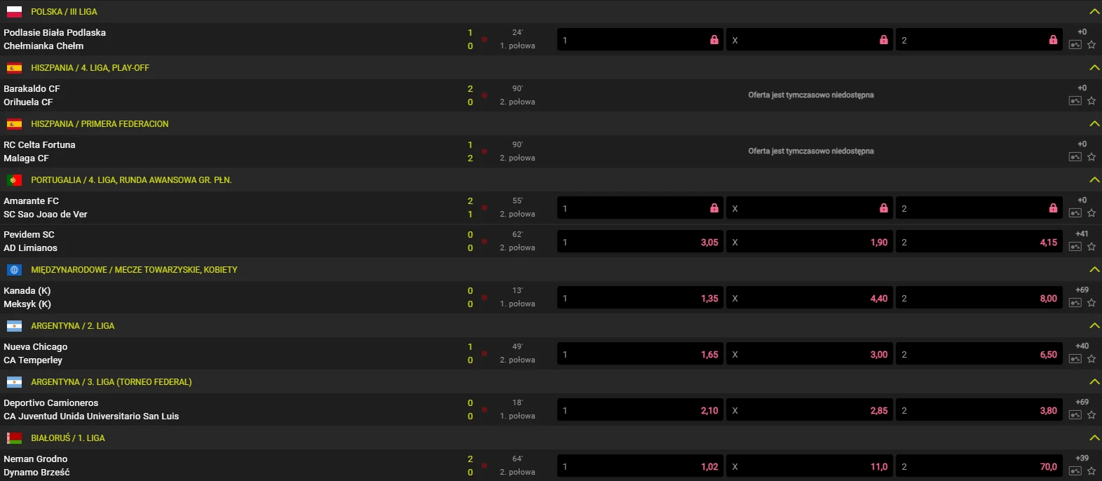 Dostępne rynki sportowe i bukmacherskie