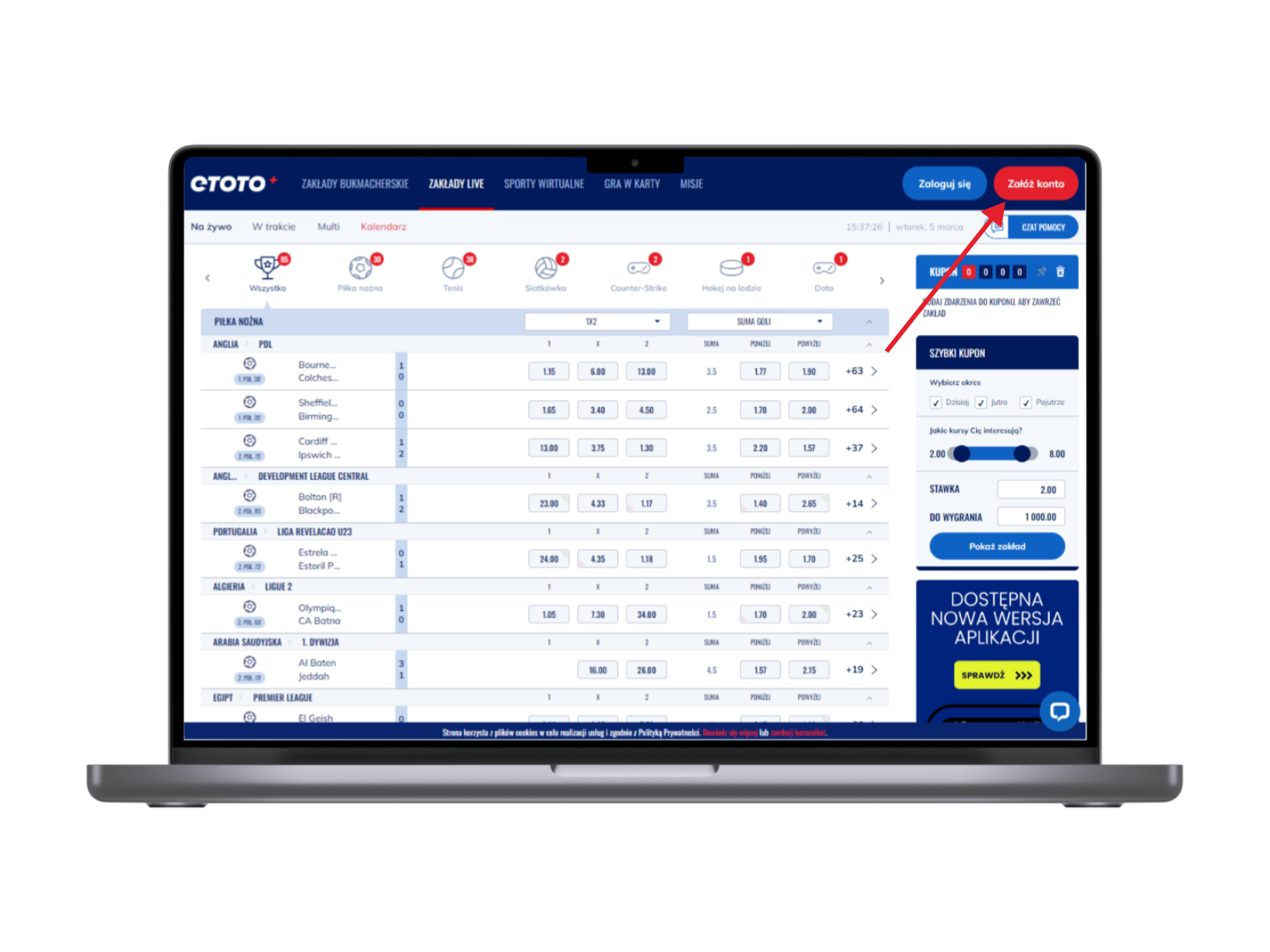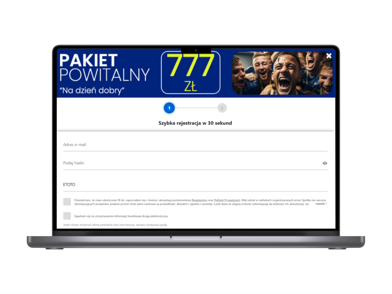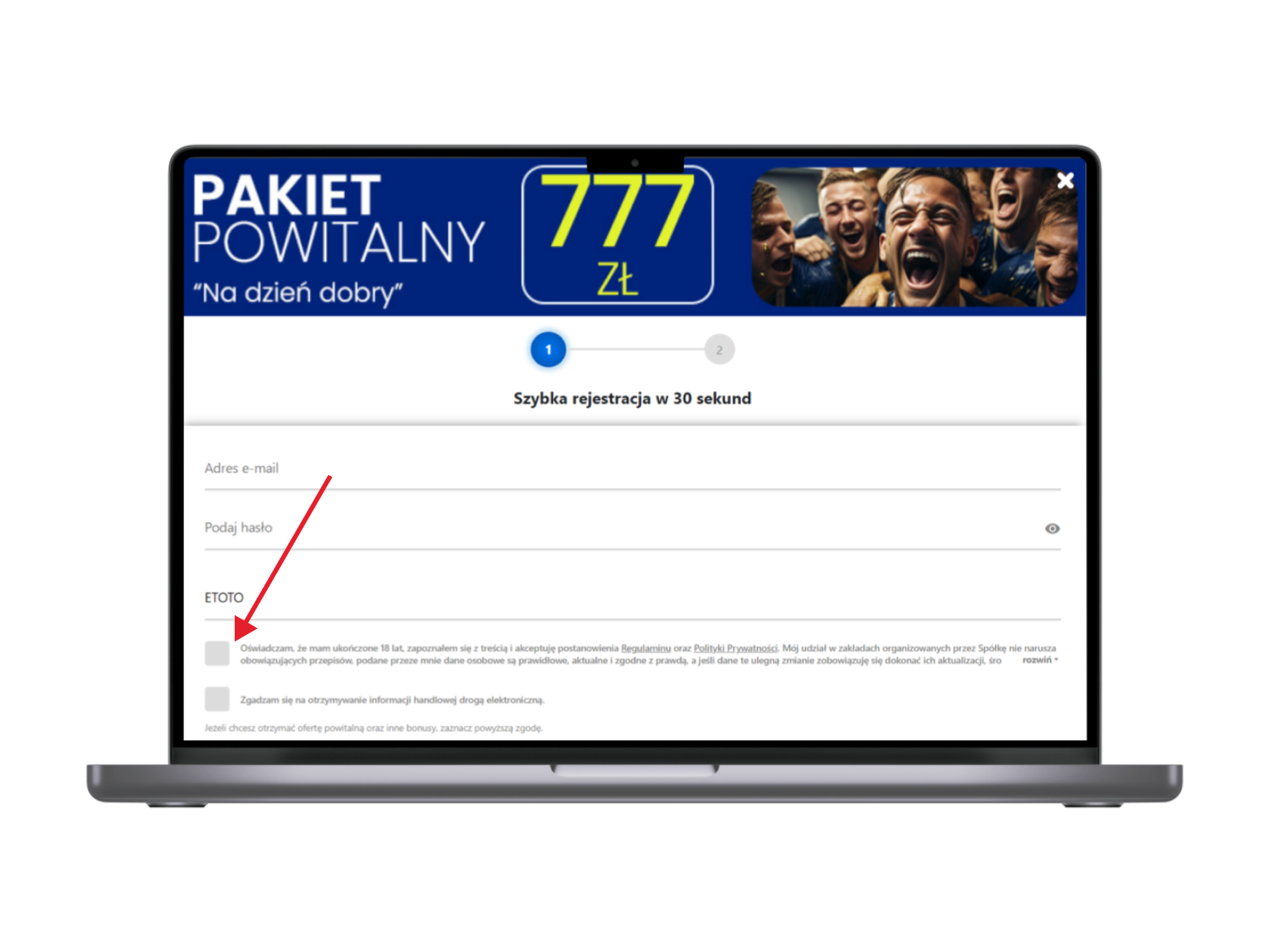 Rejestracja w eToto jest bardzo szybka i prosta. Sam bukmacher deklaruje, że zajmuje ona zaledwie 30 sekund. I rzeczywiście, konto tymczasowe dasz radę utworzyć w takim czasie. Aby to zrobić, musisz wykonać czynności, które opisujemy poniżej.