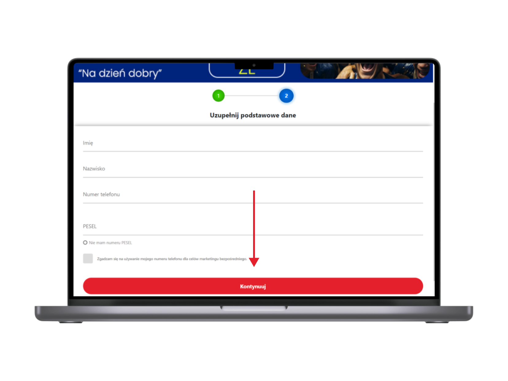 - Zaznacz zgody marketingowe i kliknij “Kontynuuj”.