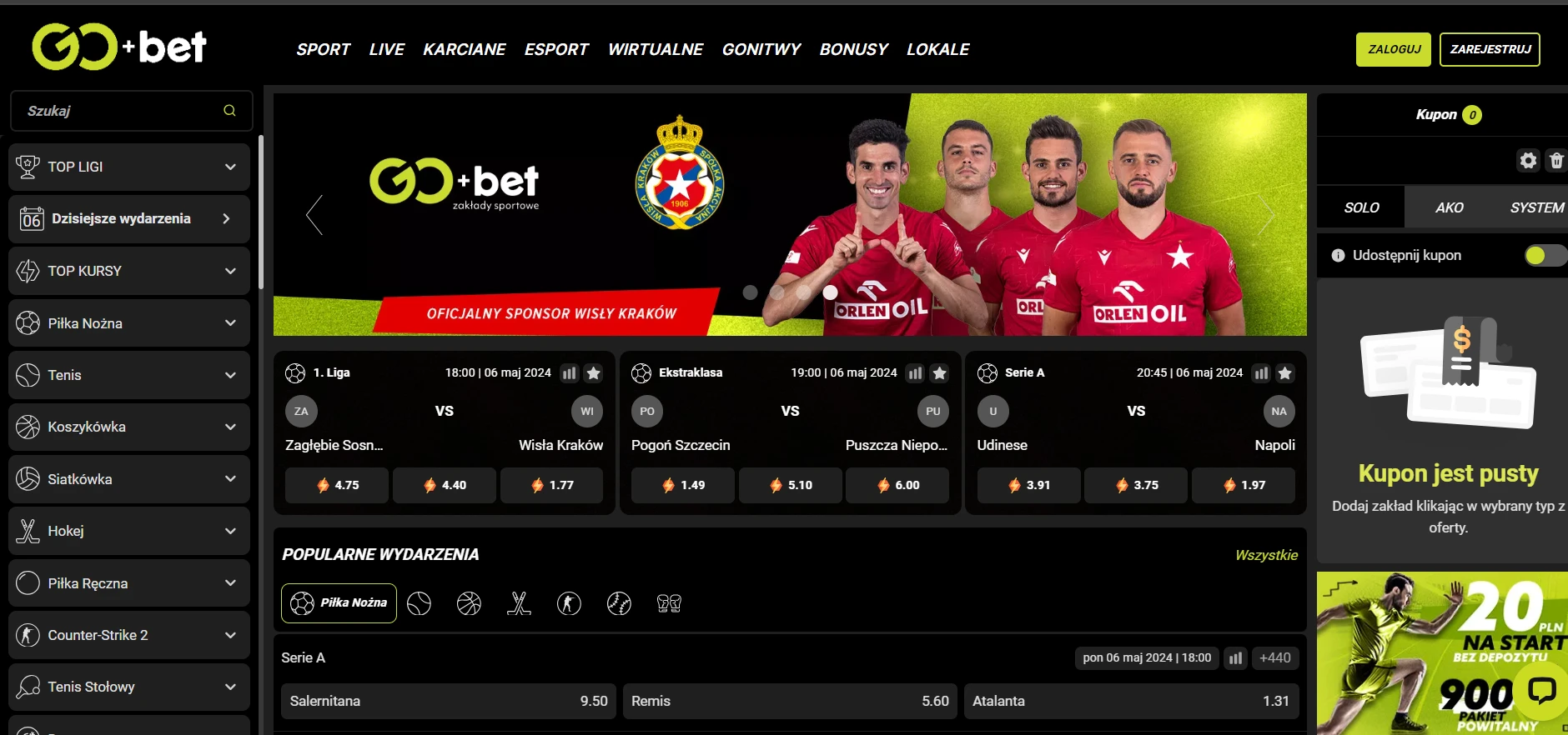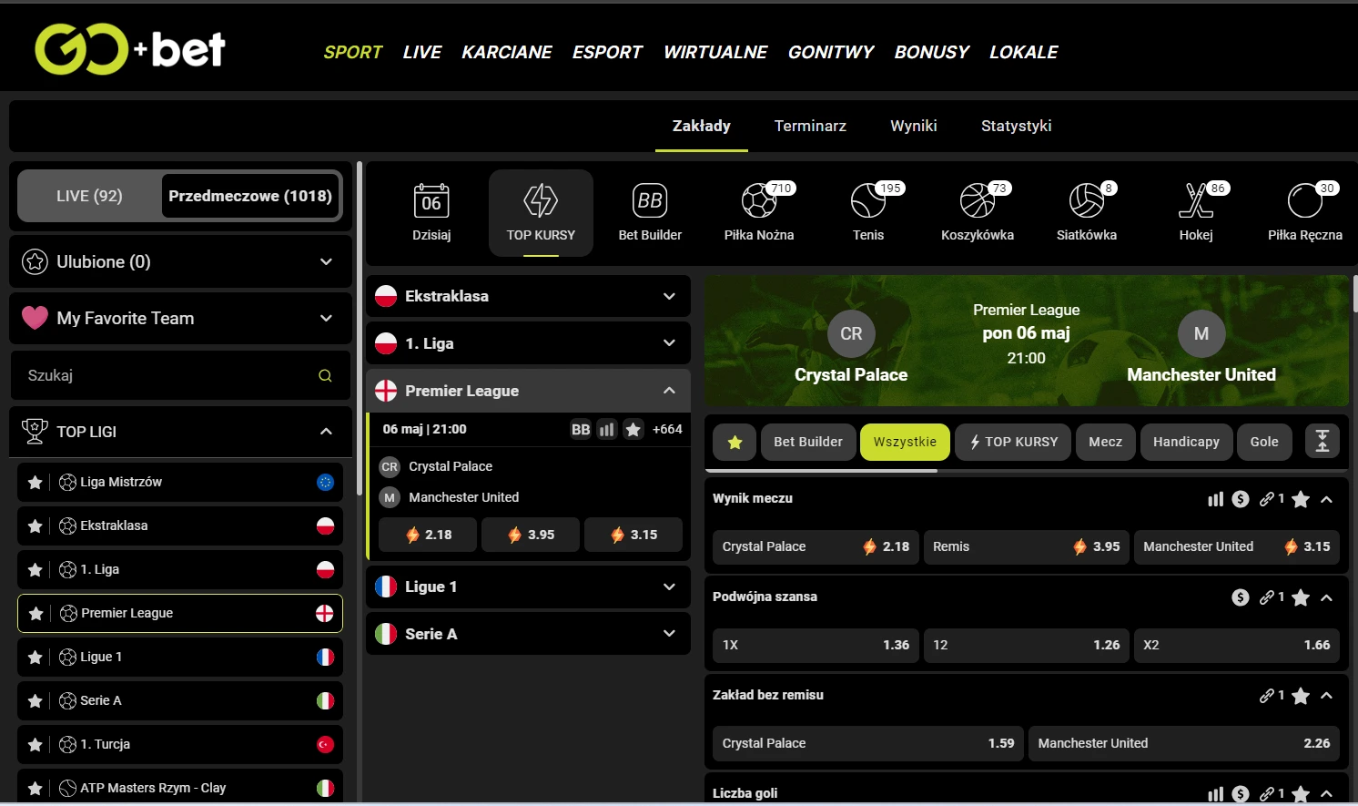 Popularne kategorie obstawiania klasycznych sportów w Go+Bet to: