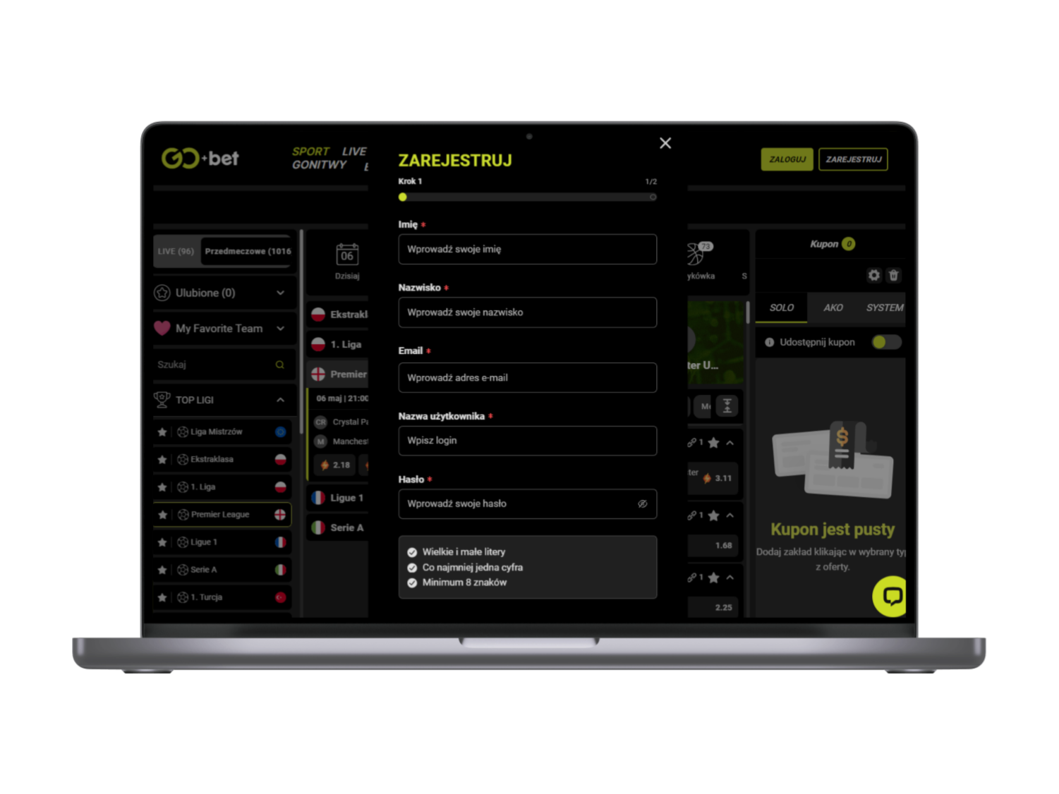 Rejestracja konta Go+Bet na komputerze