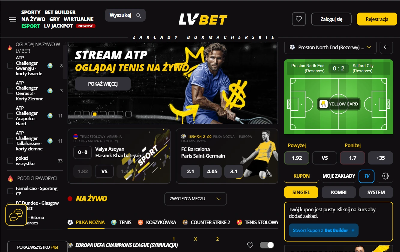 Na stronie LVBet znajduje się wiele zakładów bukmacherskich zarówno na sporty klasyczne jak i sporty wirtualne. To urozmaicenie jest kolejnym udowodnieniem faktu, że LVBet jest stale rozwijającą się platformą dążącą za aktualnymi trendami i potrzebami na rynku. Na stronie możemy spotkać zarówno zagraniczne jak i polskie rozgrywki, a w obrębie nich rozgrywki z najbardziej popularnych lig po te mniej oglądane. To również jest kolejnym ukłonem do fanów obstawiania w LVBet, ponieważ platforma pozwala na korzystanie z niej dowoli niezależnie od zainteresowań w zakresie dyscypliny sportowej, rangi obserwowanego zespołu, czy częstotliwości obstawiania.