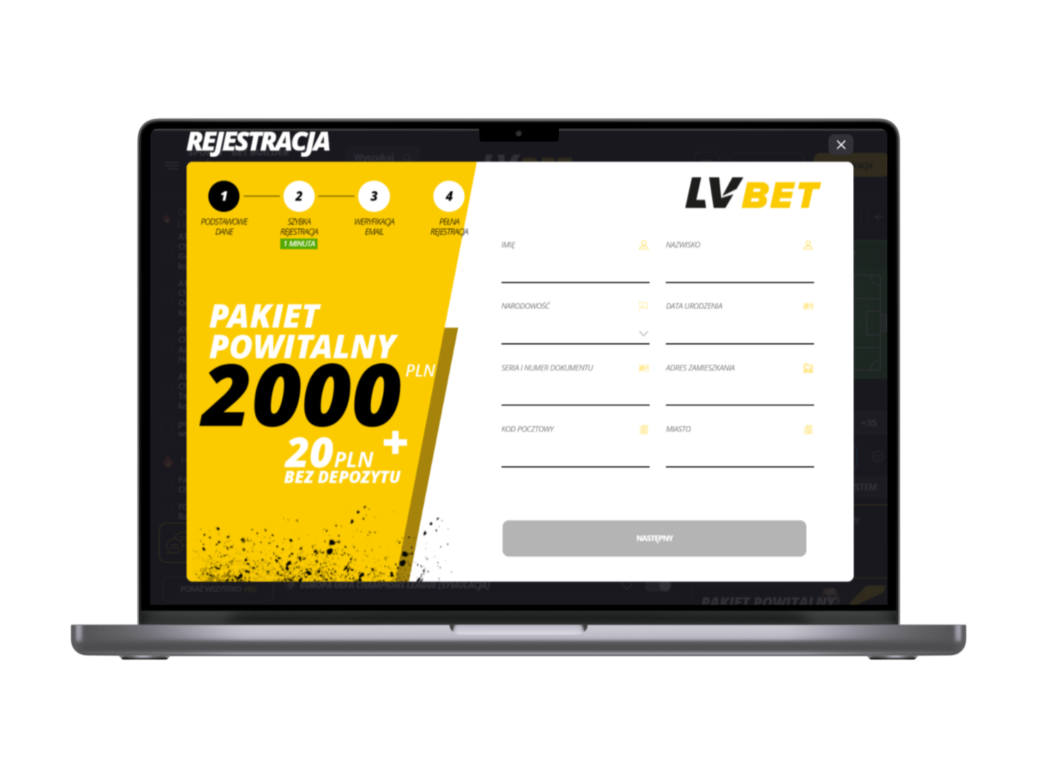 Założenie konta w serwisie LVBet poprzez komputer nie jest trudne i wymaga jedynie kilku prostych, przedstawionych poniżej kroków: