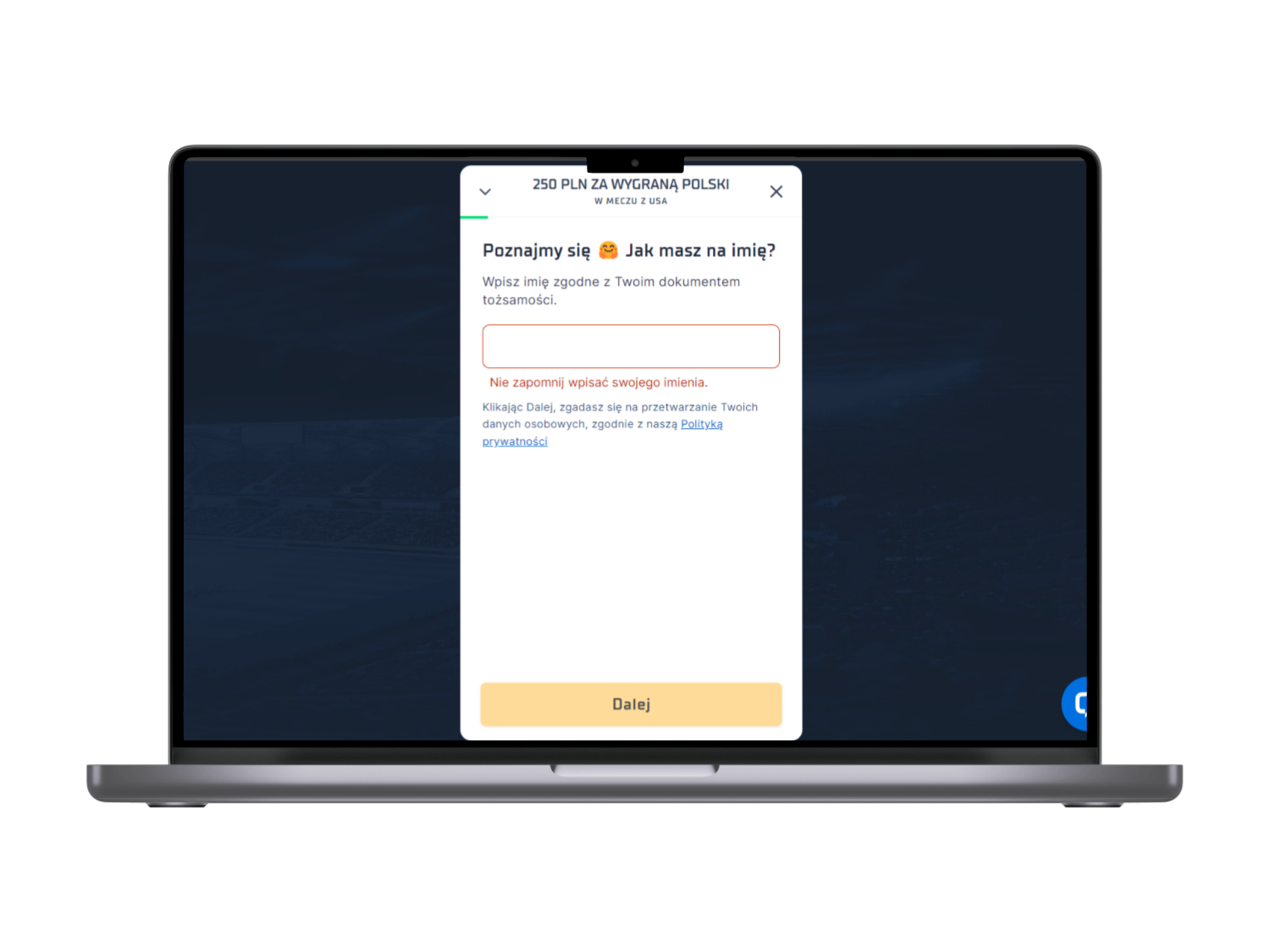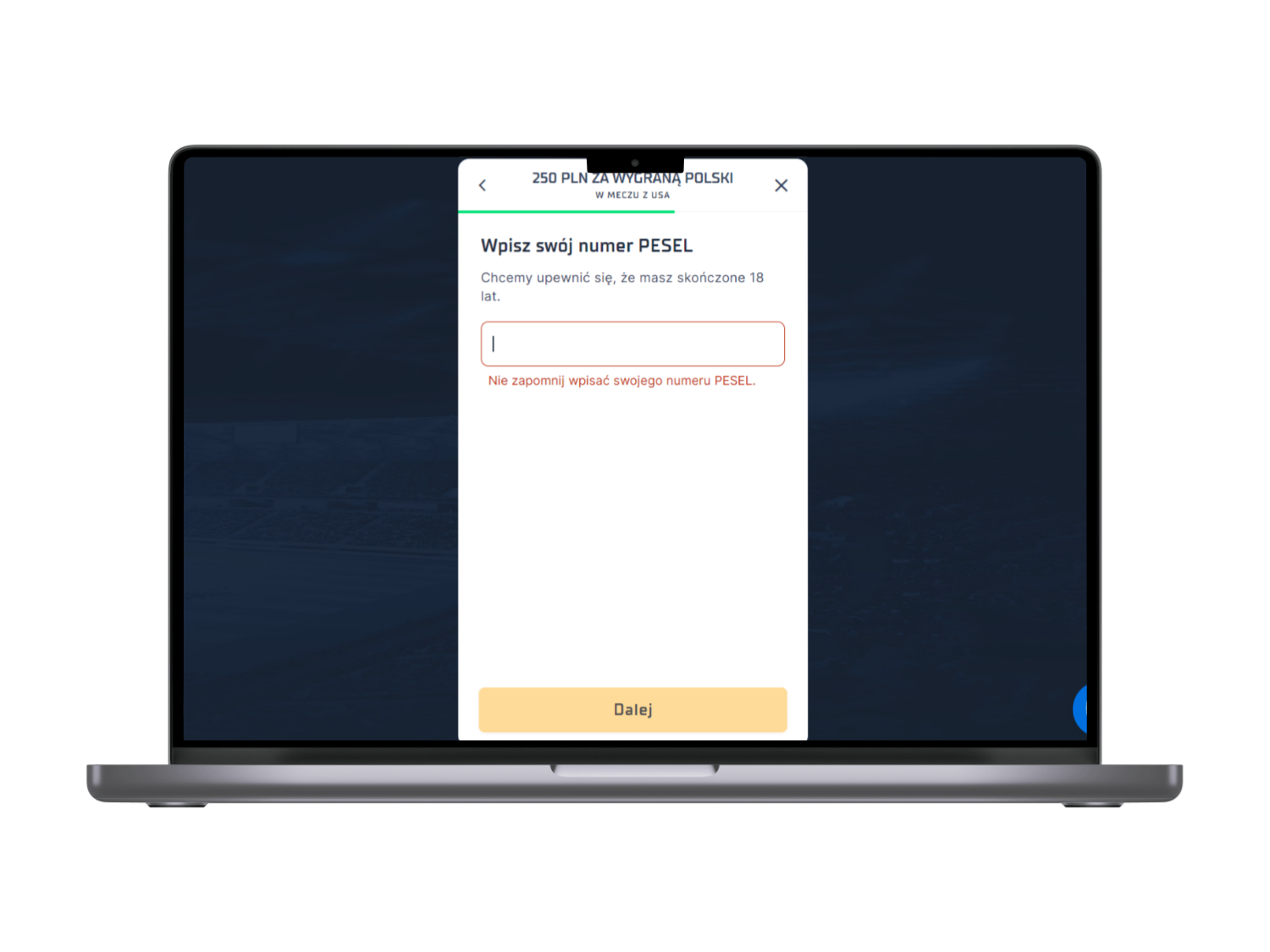- Wpisz swoje dane osobowe: imię, nazwisko, numer pesel, kod sms, oświadczenie skąd pochodzą środki na grę