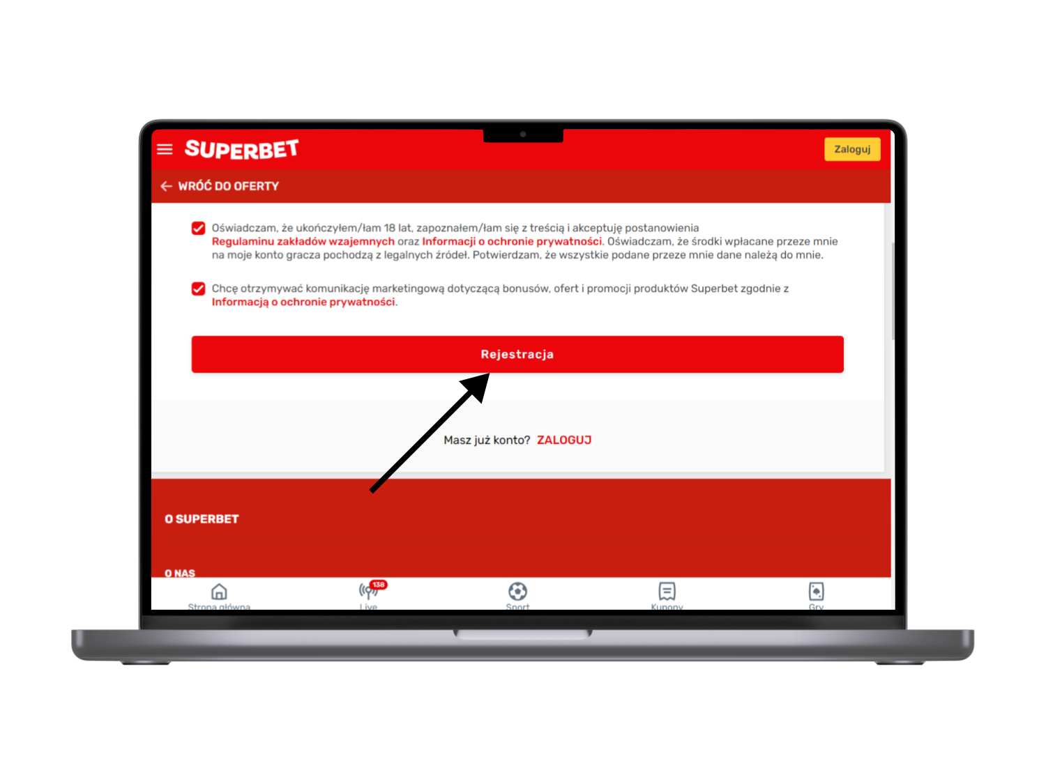 Weryfikacji możesz dokonać w dowolnym momencie, przez 30 dni ważności konta tymczasowego. Możesz wykonać ją też do razu. Superbet, już na poziomie rejestracji, oferuje bowiem szybką weryfikację przez profil zaufany.