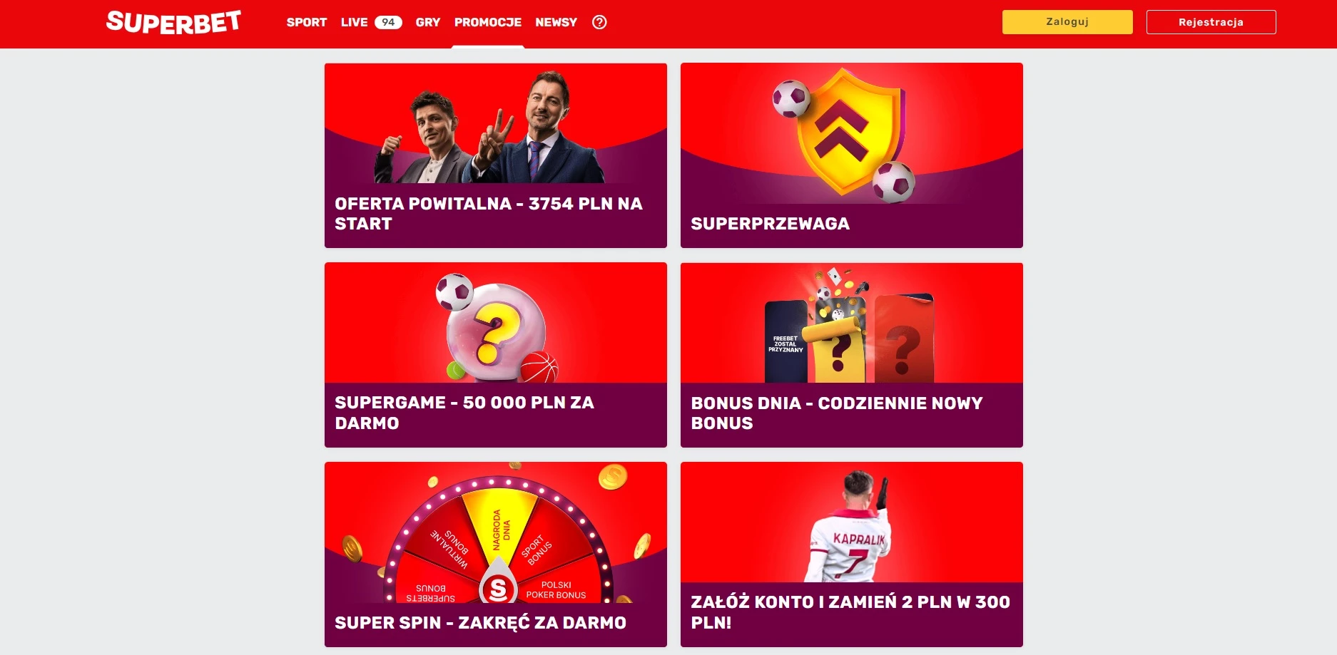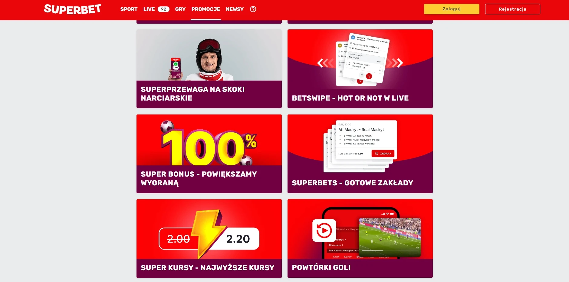 Superbet ma nie tylko bogatą, ale też korzystną ofertę. Kursy na piłkę nożną, czy tenisa są jednymi z czołowych na rynku. Dodatkowo gracze mają do dyspozycji zakładkę Super Kursy, w której znajdują się wyższe kursy na wybrane wydarzenia.