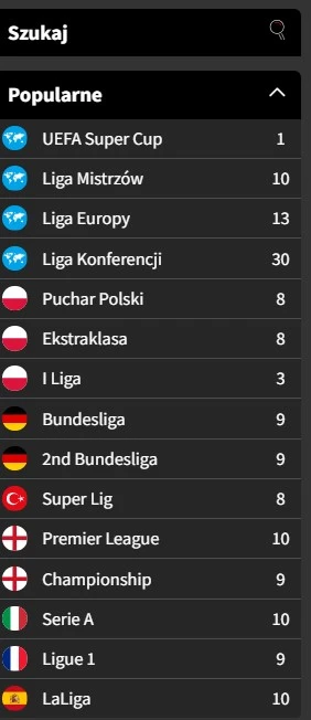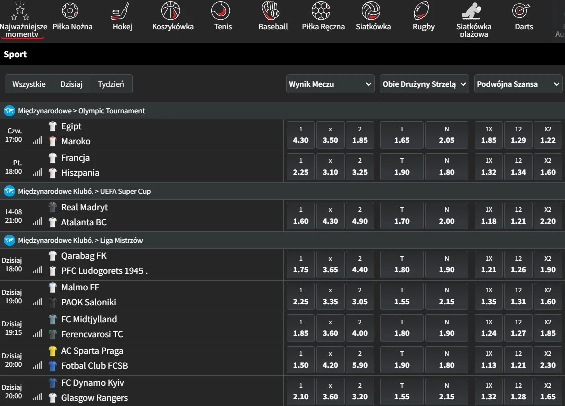W tej zakładce możemy znaleźć wszystkie dyscypliny oraz wydarzenia oferowane przez bukmachera. |
