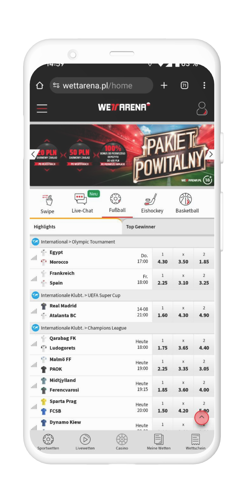 Oferta zakładów w Wett Arena